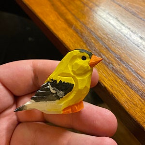 American Goldfinch Handmade Wood Figurine Miniature Yellow Bird Art Statue Carved Ornament Small Animals Collectible