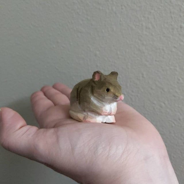 Mouse - Wood Figurine Field House Rat Pet Mice Miniature Handmade Critter Rodent Art Carved Small Animals Collectible