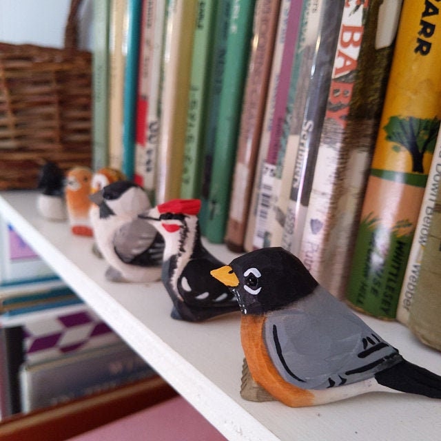 Robin Bird Handmade Wood Figurine Statue Decor Miniature American Art Gift Mini Carved Ornament Small Animals Collectible