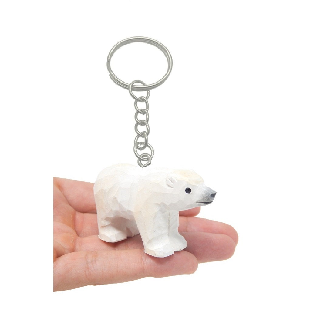 White Polar Bear Keychain Ring Clip Charm Miniature Wood Mini Figurine Small Animal